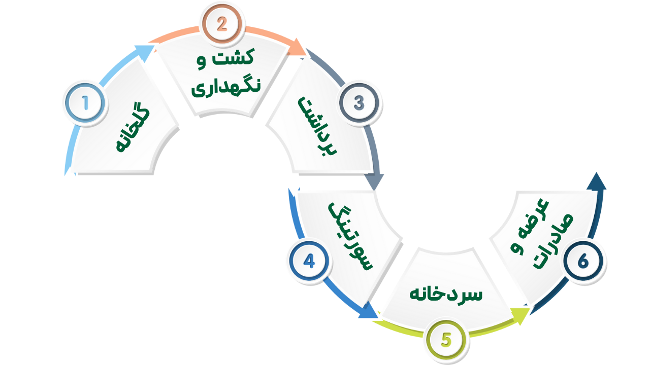 چرخه فعالیت زاگرس از گلخانه آغاز میشود و با مراقبت مستمر، فرآوری دقیق و نگهداری مدرن در سردخانه، محصولاتی باکیفیت و تازه را به سفره خانوادهها و بازارهای داخلی و صادراتی میرساند.